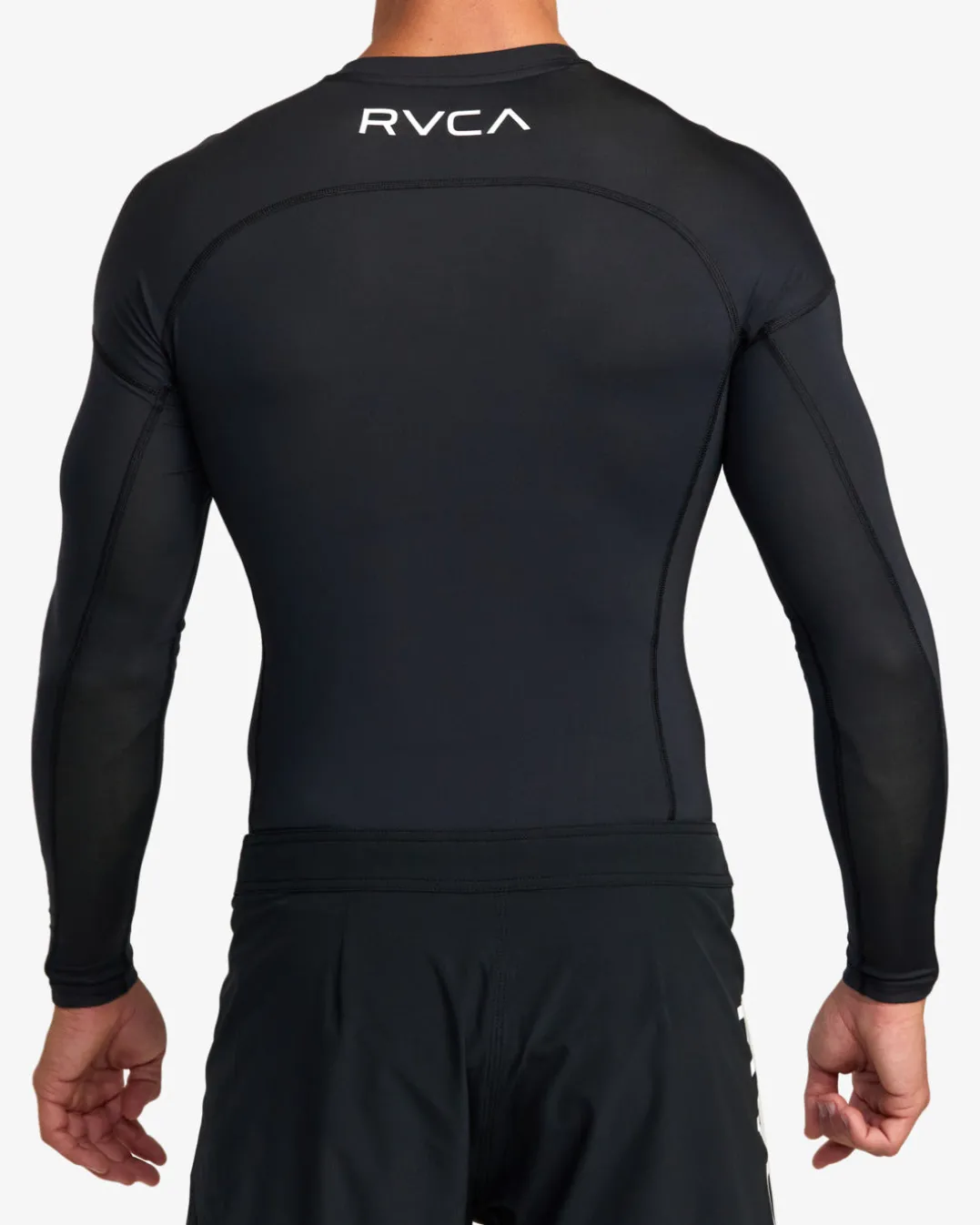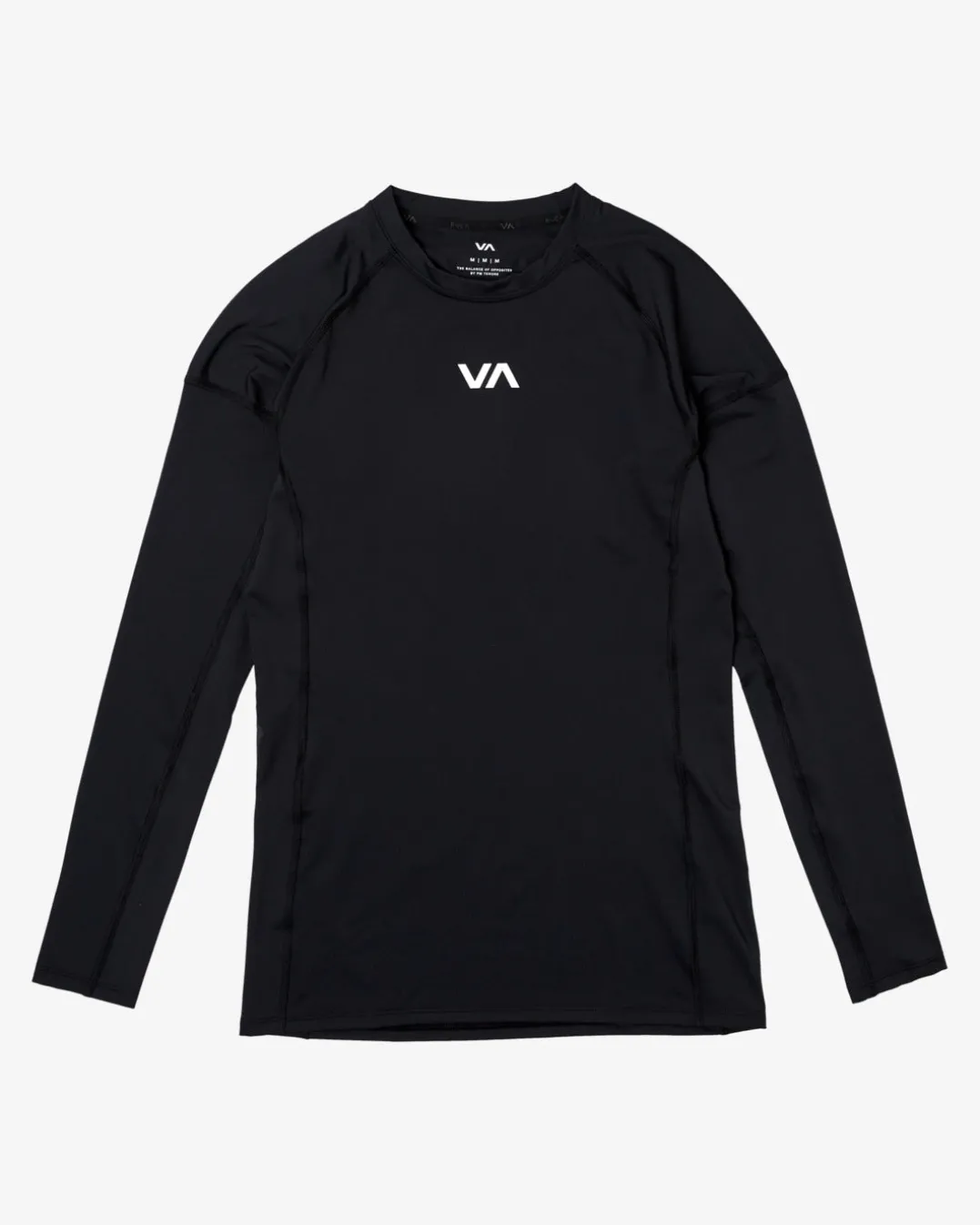 Made of stretchy and strong recycled fabric, this VA Sport long-sleeve rashguard has a fitted shape with raglan sleeves for better mobility. Comes in a range of fresh prints and colorways. Featured here in the Black colorway.