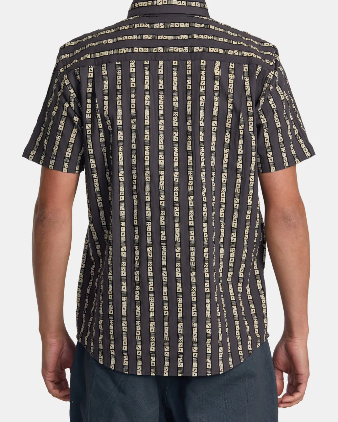 Tap into holiday mode with RVCA’s Vacationist Short Sleeve Woven Shirt. Crafted from lightweight cotton gauze fabric, this printed button-up shirt features a traditional collar neck, a single chest pocket, and a straight hem. Topped with Vacancy Collection trims throughout. Featured here in the Black colorway.