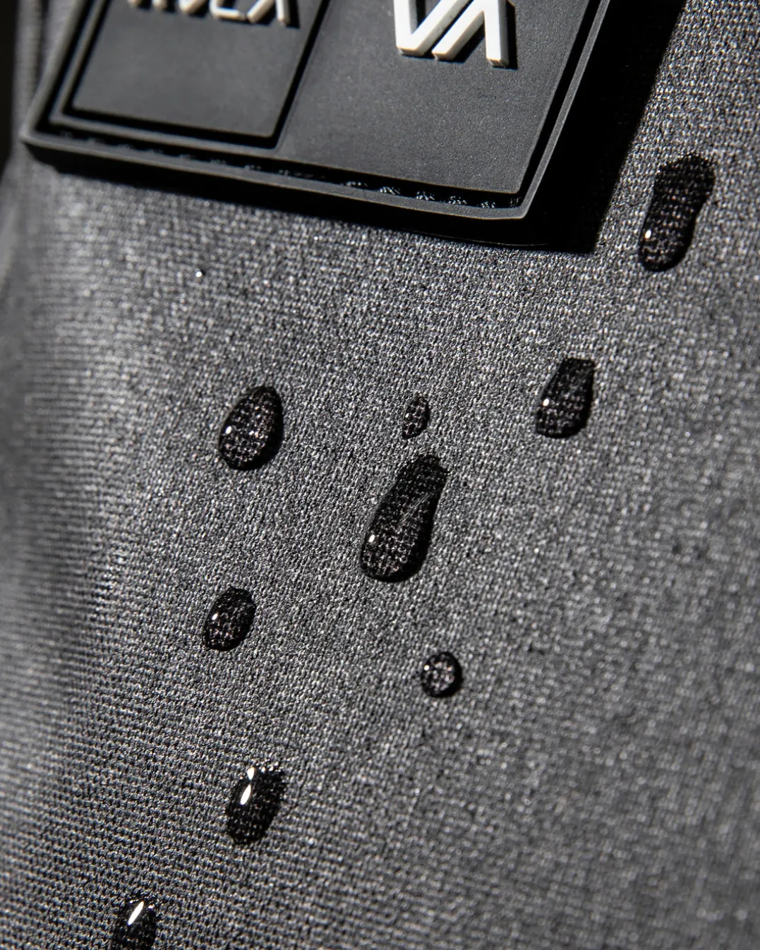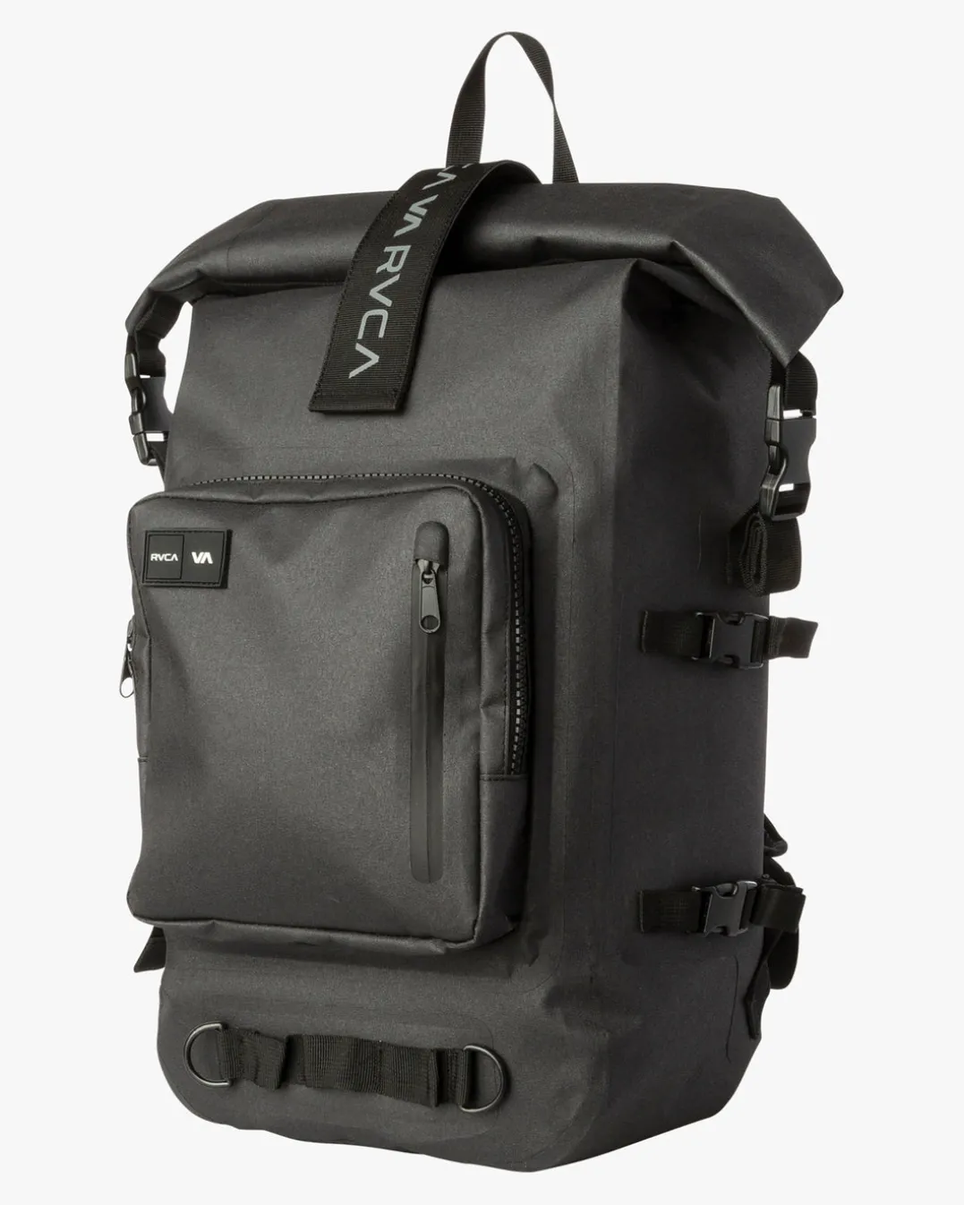 The RVCA Weld Backpack features durable, water-repellent fabric to keep your belongings safe and dry. Built with two zippered side compartments, an internal organizer, water bottle pocket and fleece-lined sunglasses pocket, this backpack is topped with adjustable shoulder straps and padded torso support for added comfort. Featured here in the Black colorway.