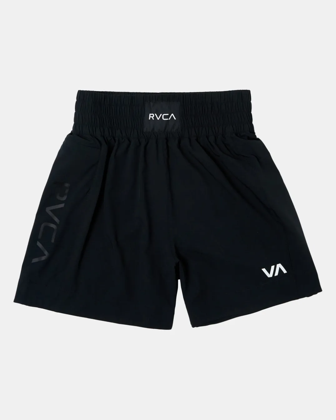 Knuckle up in the RVCA Yogger Elastic Waist Boxing Shorts 17″, made from soft, lightweight, breathable poly stretch for the ultimate fit. Featuring a traditional Elastic Waist, these boxing shorts are covered in VA Sport logo branding for a standout look. Topped with a hidden zip pocket for your needs. Featured here in the Black colorway.