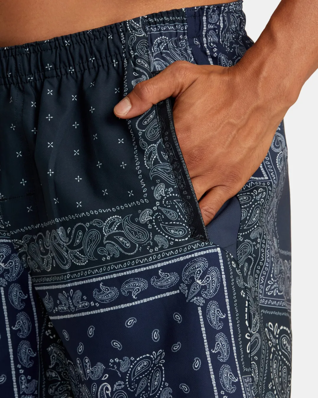 Combining heritage design and performance-enhancing comfort, the RVCA Yogger Stretch Elastic Waist Athletic Shorts 17″ have you covered. These men’s athletic shorts are made from stretch polyester and feature an Elastic Waist drawcord waist, slightly scalloped hem with split side vent and pockets throughout. Topped with RVCA VA branding. Featured here in the Black Patchwork colorway.