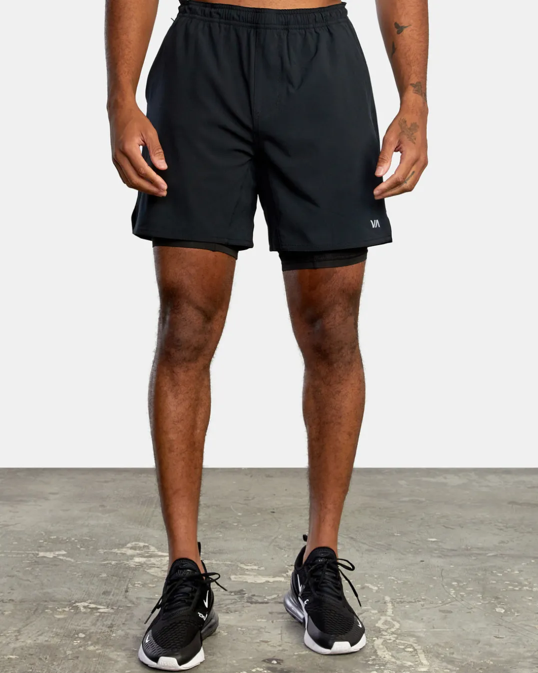 The RVCA Yogger Train 2-In-1 Elastic Waist Workout Shorts 17″ offer ultimate comfort, coverage and performance-enhancing design in one. Built with compression shorts beneath a layer of recycled 4-way stretch, these Odour-Control, moisture-wicking shorts feature an Elastic Waist drawcord waist, split outer hem, side pockets and VA Sport branding. Featured here in the Black Multi colorway.