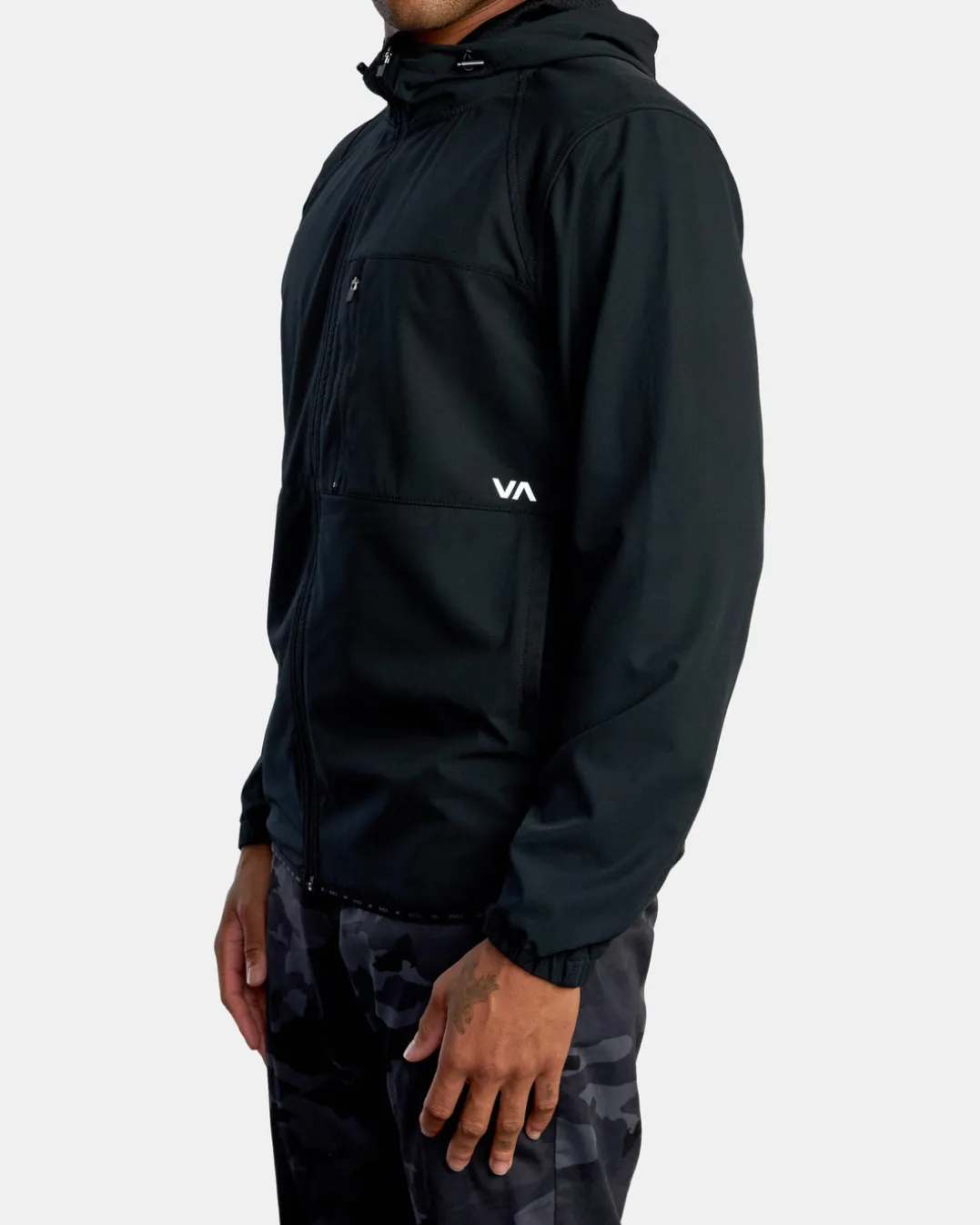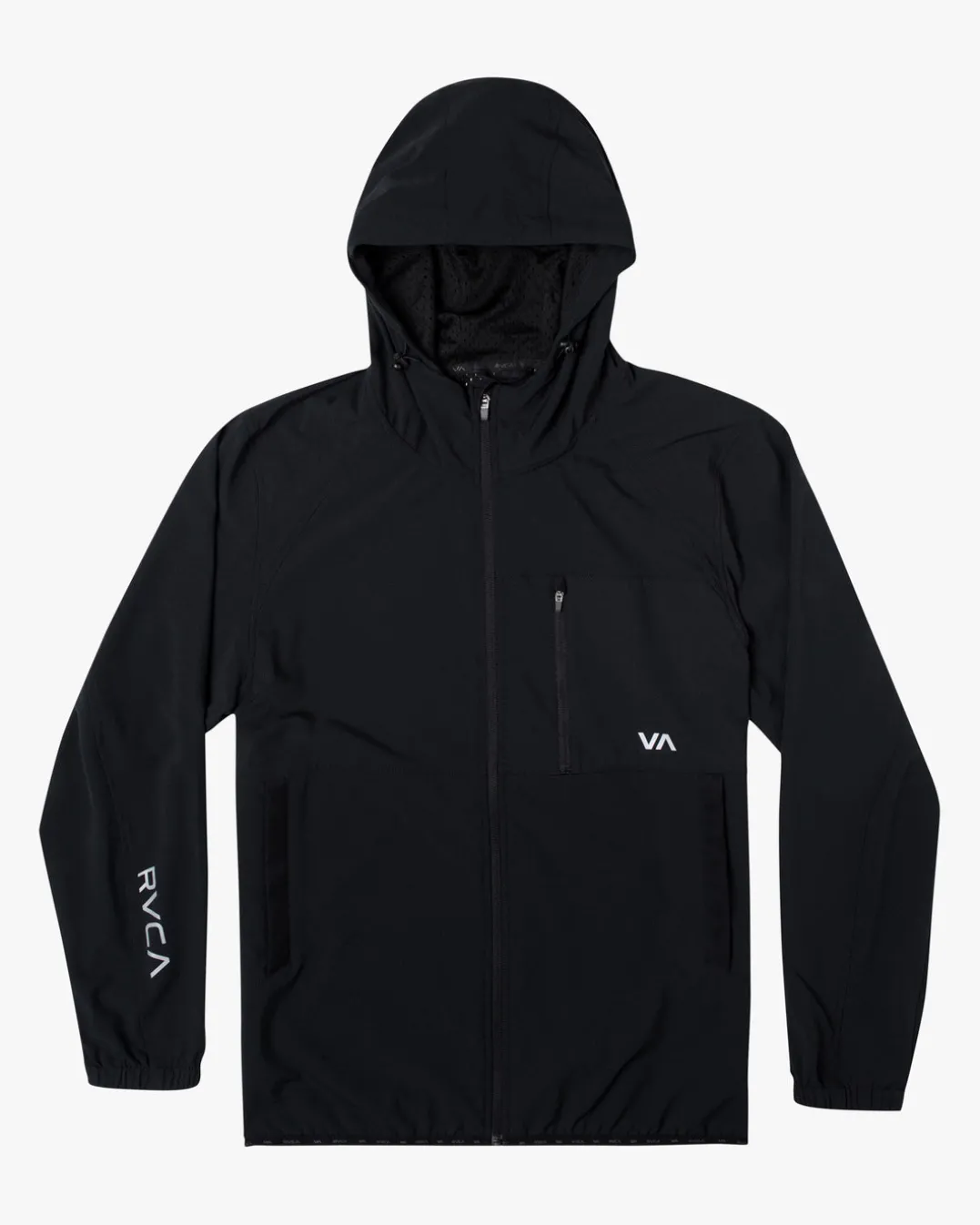 The RVCA Yogger Zip-Up Hooded Jacket II offers ultimate protection and style for days. Made from premium 4-Way Stretch, this men’s hooded jacket features a front zip closure, elastic hem and cuffs, adjustable toggles at the hood and pockets throughout for your needs. Topped with VA branding. Featured here in the Black colorway.